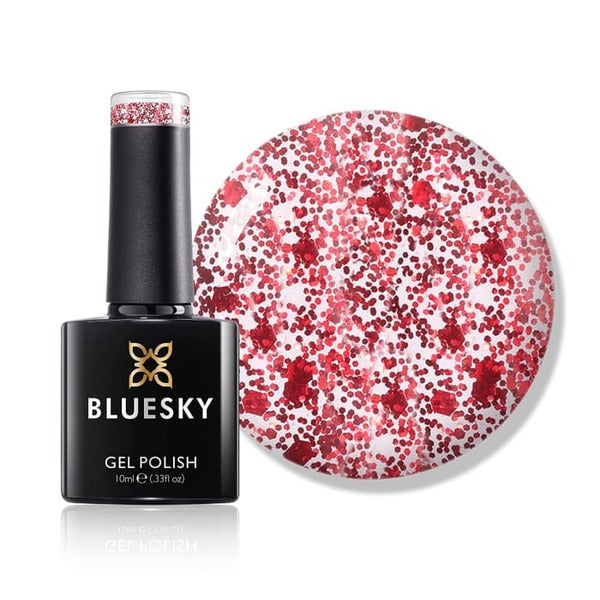 Achieve a stunning, high-gloss manicure with Bluesky Red Million glitter gel polish. This formula is designed to provide a durable, chip-resistant colour that maintains its shine for up to three weeks.