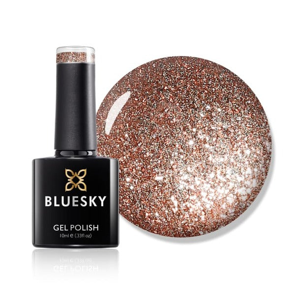 Bluesky Tinsel Toast provides a warm and cosy bronze glitter polish, ideal for festive autumn, winter, and Christmas manicures. This professional formula offers a high-gloss finish that resists chipping for extended wear. This gel effect nail polish combines seasonal aesthetics with reliable, long-lasting performance.