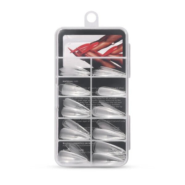 Bluesky Soft Gel Tips, shaped in Stiletto, allow you to create professional-quality nail extensions efficiently at home. These soft gel tips are specifically formulated for optimal bonding when used alongside the required Bluesky strong adhesive. Achieve stunning, well-defined manicures quickly with this straightforward application method for creating sculpted looks.