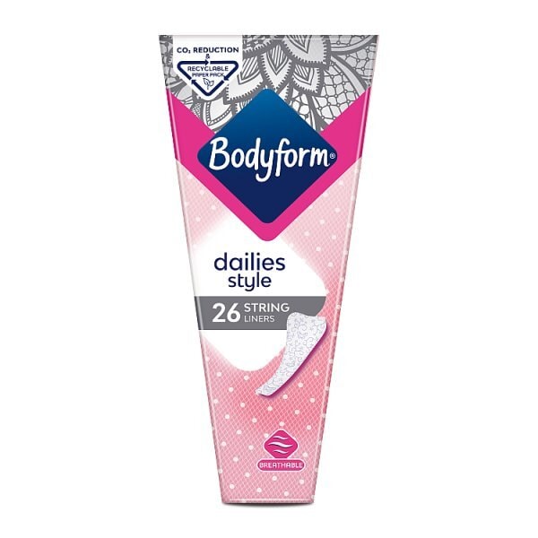 bodyform string liners have a unique shape to fit your string underwear the cotton soft flexible surface will ensure you hardly notice its there