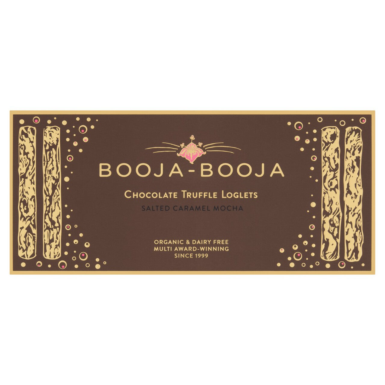 Booja-Booja presents ten expertly crafted, melt-in-the-mouth chocolate truffle loglets in this elegant presentation. They feature a rich Salted Caramel Mocha flavour and are fully coated in dark chocolate flakes. This confectionery is certified organic and completely dairy free, catering to discerning palates.