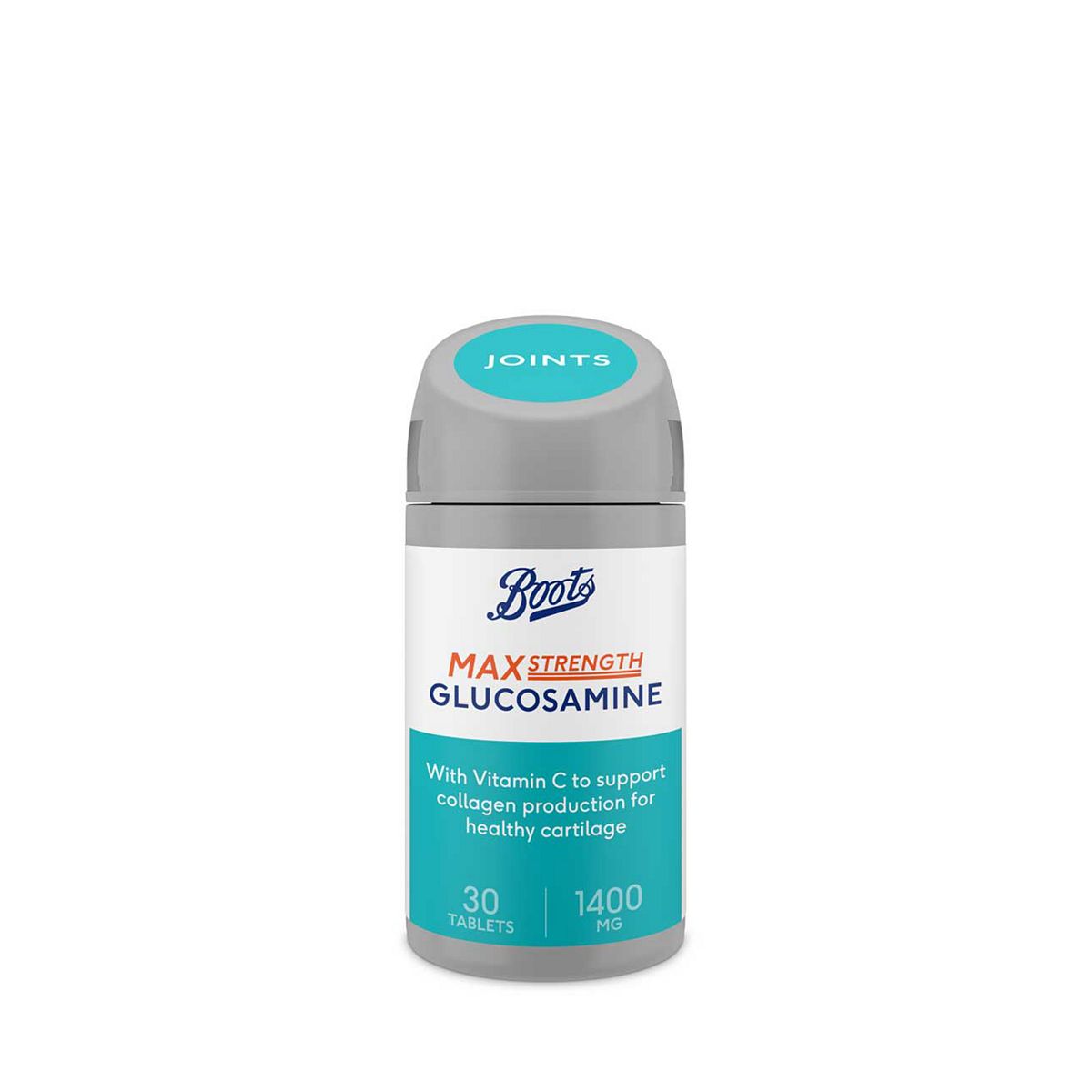 Glucosamine 1400 mg and Vitamin C Food Supplement, 30 TabletsWhat does it do?Glucosamine is a building block of the cartilage and is naturally found in the fluid surrounding the joints. Our max strength Glucosamine formula also contains Vitamin C which supports collagen production for healthy cartilage. Cartilage helps reduce friction and acts as a cushion between the joints.