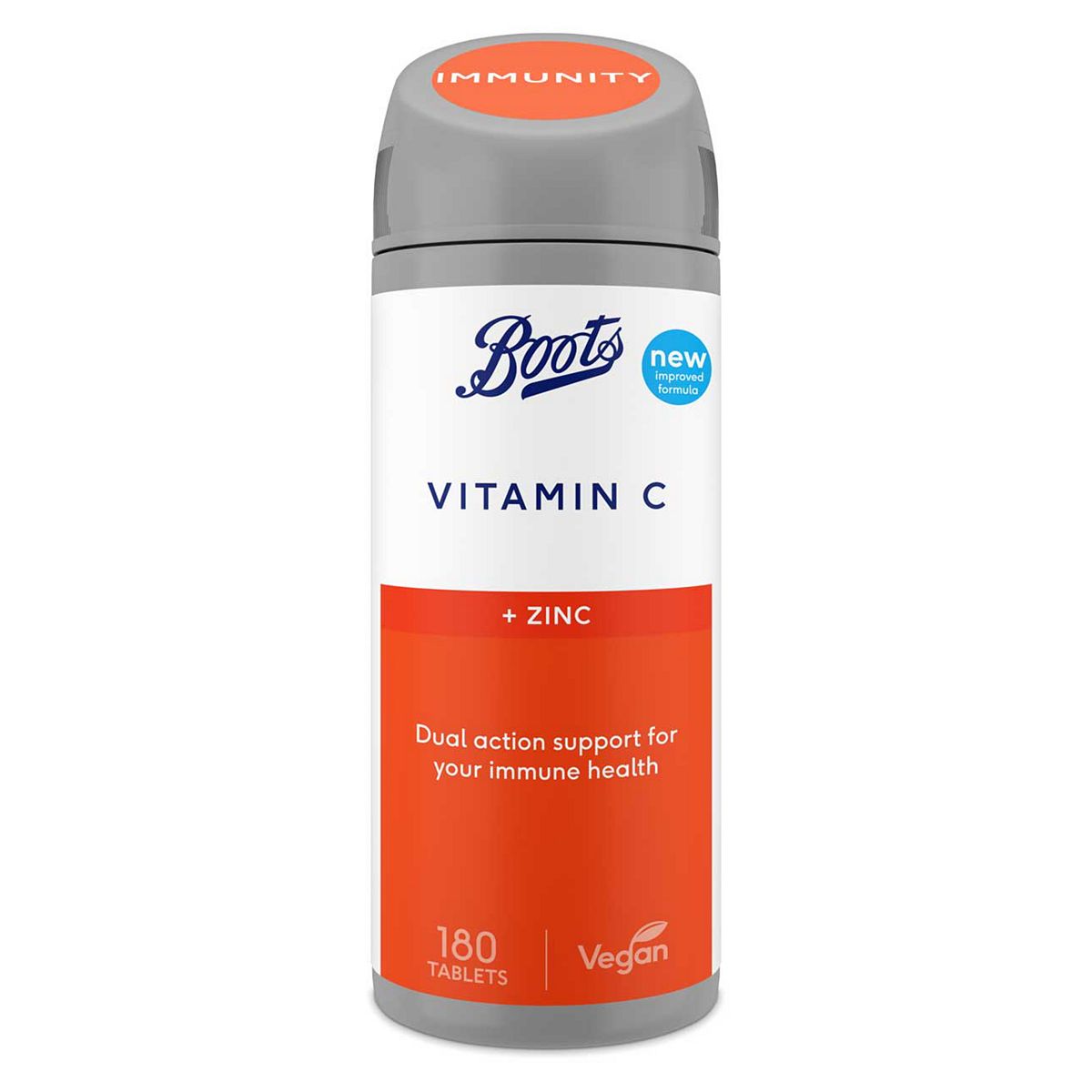 Vitamin C and Zinc Food Supplement, 180 TabletsWhat does it do?Combining both Vitamin C and Zinc together, this supplement provides dual action immune support in one tablet. Vitamin C is water soluble so it is only stored in the body in small amounts making regular intake important. Vitamin C plus Zinc helps support a healthy immune system.