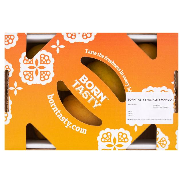 Born Tasty Speciality Mangoes are carefully selected fruits sourced directly from Mexico. This selection is focused on delivering high quality and vibrant flavour profiles to the consumer. The packaging promotes the inherent freshness of this tropical fruit selection.
