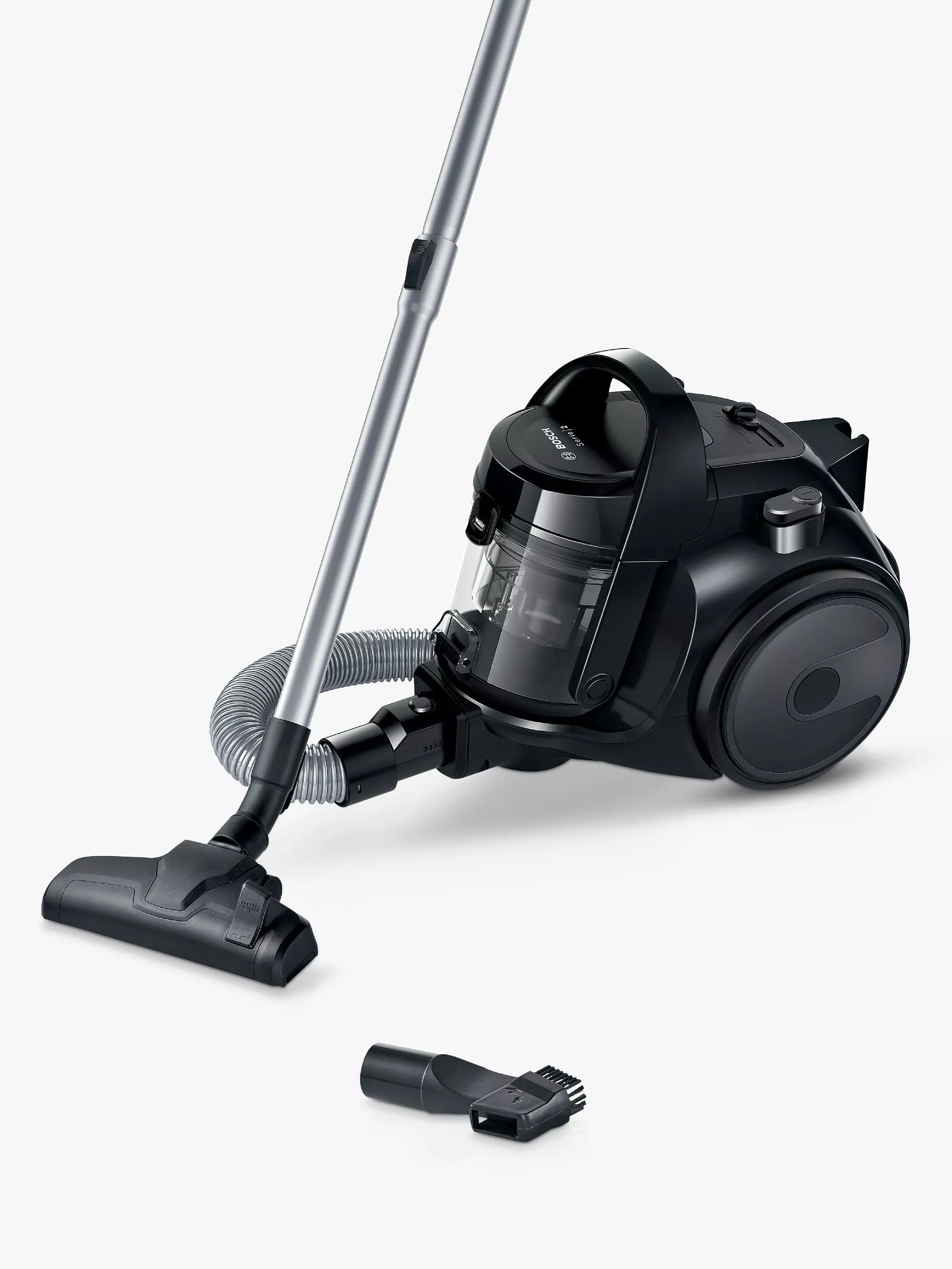 Experience powerful cleaning with this compact and efficient Bosch Series 2 Bagless Vacuum Cleaner. Its lightweight design makes cleaning a breeze, while its hygienic filter system ensures clean exhaust air for a healthier home. Perfect for smaller spaces and convenient storage.