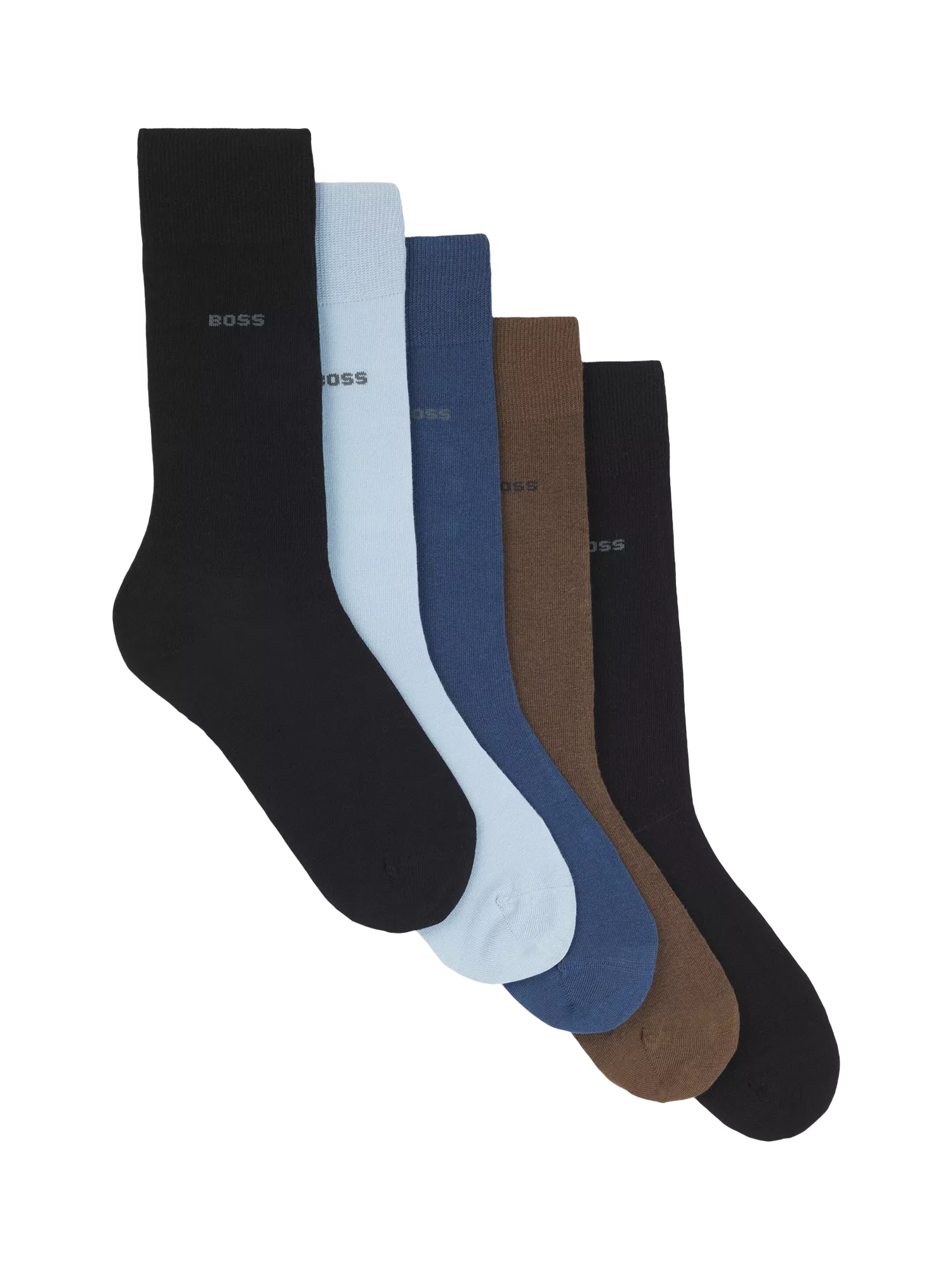 With subtle branding, these socks by BOSS come in a handy pack of five and are blended with a high cotton count for everyday appeal.