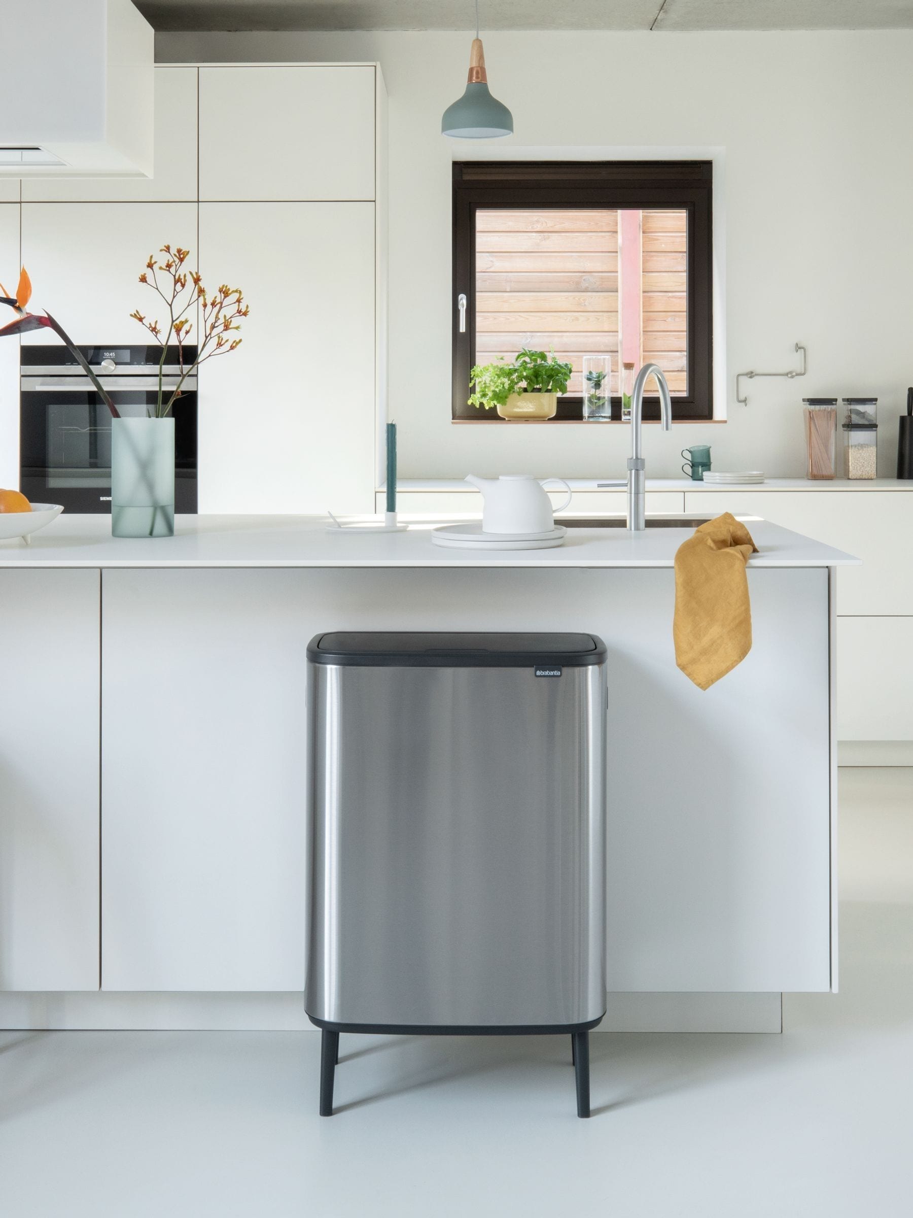 Looking for a beautiful solution for waste separation? This XXL Brabantia Bo Touch Bin Hi 2 x 30 litre has a beautiful design plus all you need for easy waste separation at home. Like two spacious and removable inner buckets for 2 kinds of waste. Double value, on legs.