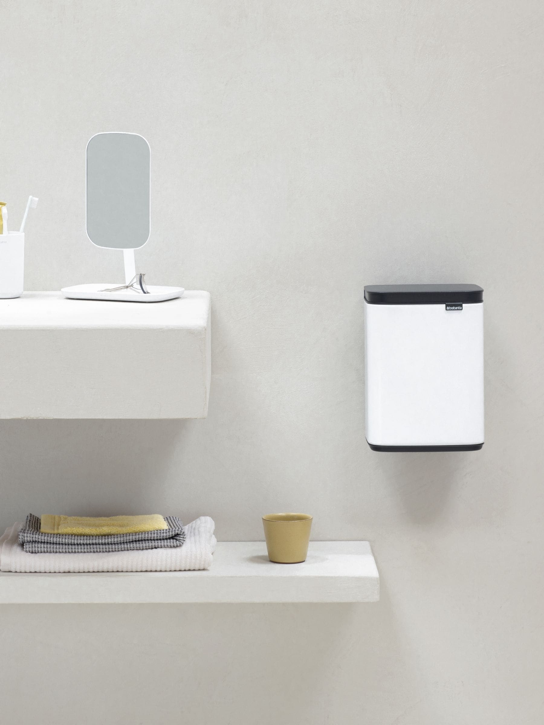 Need a small bin, that's great in design? Then this Brabantia Bo Waste Bin 4 litre is the bin for you! This little bin fits in the smallest corner, but can hang on the wall too. The nifty lid opens easily from the left, right and front of the bin. So no more twisting your arm to put something in. Beautiful on the outside and in!