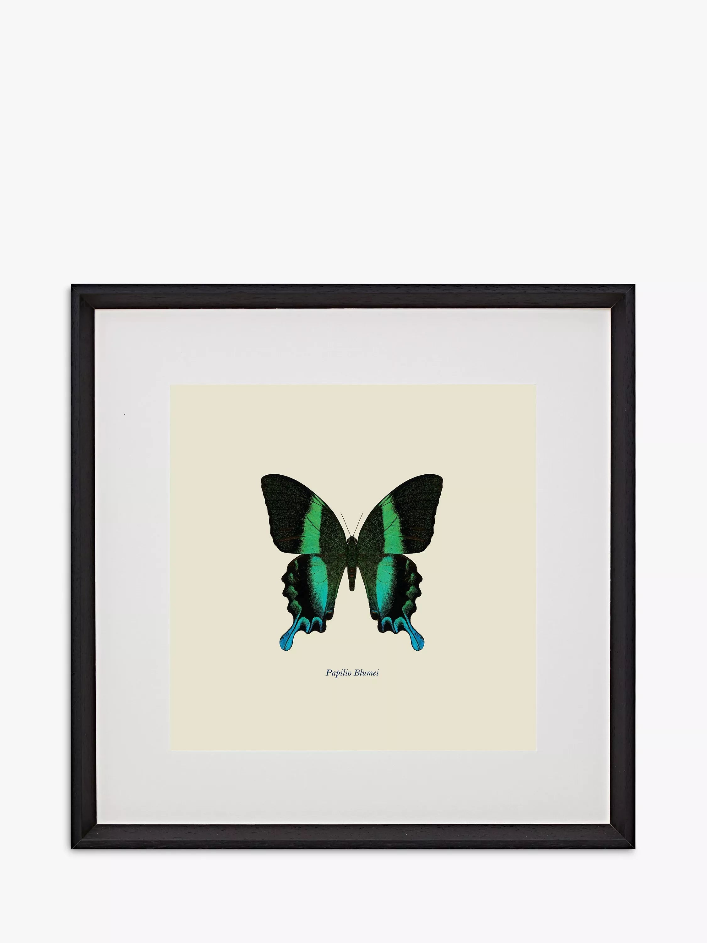 A colourful illustration of a butterfly, presented with a mount in a wood-effect frame.