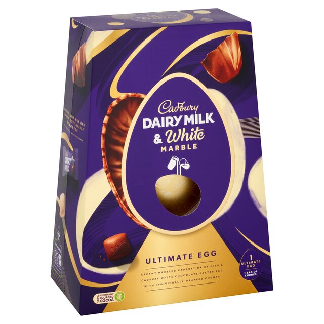 Creamy marbled Cadbury dairy milk & Cadbury white chocolate Easter egg with individually wrapped chunksYour Easter egg has been made with Cadbury dairy milkProduct information Creamy marbled Cadbury dairy milk & Cadbury white chocolate Easter egg with individually wrapped chunksYour Easter egg has been made with Cadbury dairy milk For... Read More