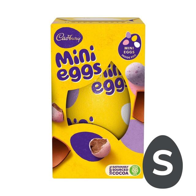 A deliciously thick Easter egg, made from classic, creamy Cadbury Dairy Milk chocolate, with a double helping of our Cadbury Mini Egg bags on the side. The perfect Easter gift for any Cadbury Mini Egg fan. Made with sustainably sourced cocoa. Vegetarian friendly.