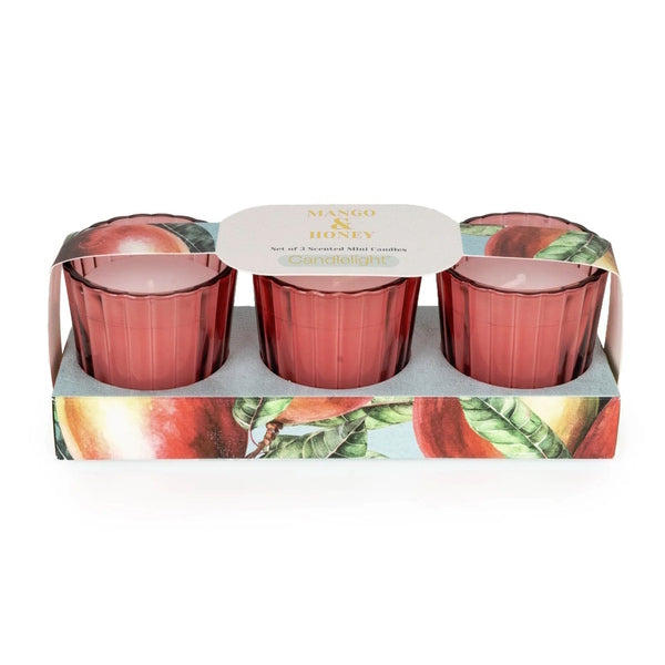 Candlelight Set of 3 Ribbed Mini Candles - Mango & Honey