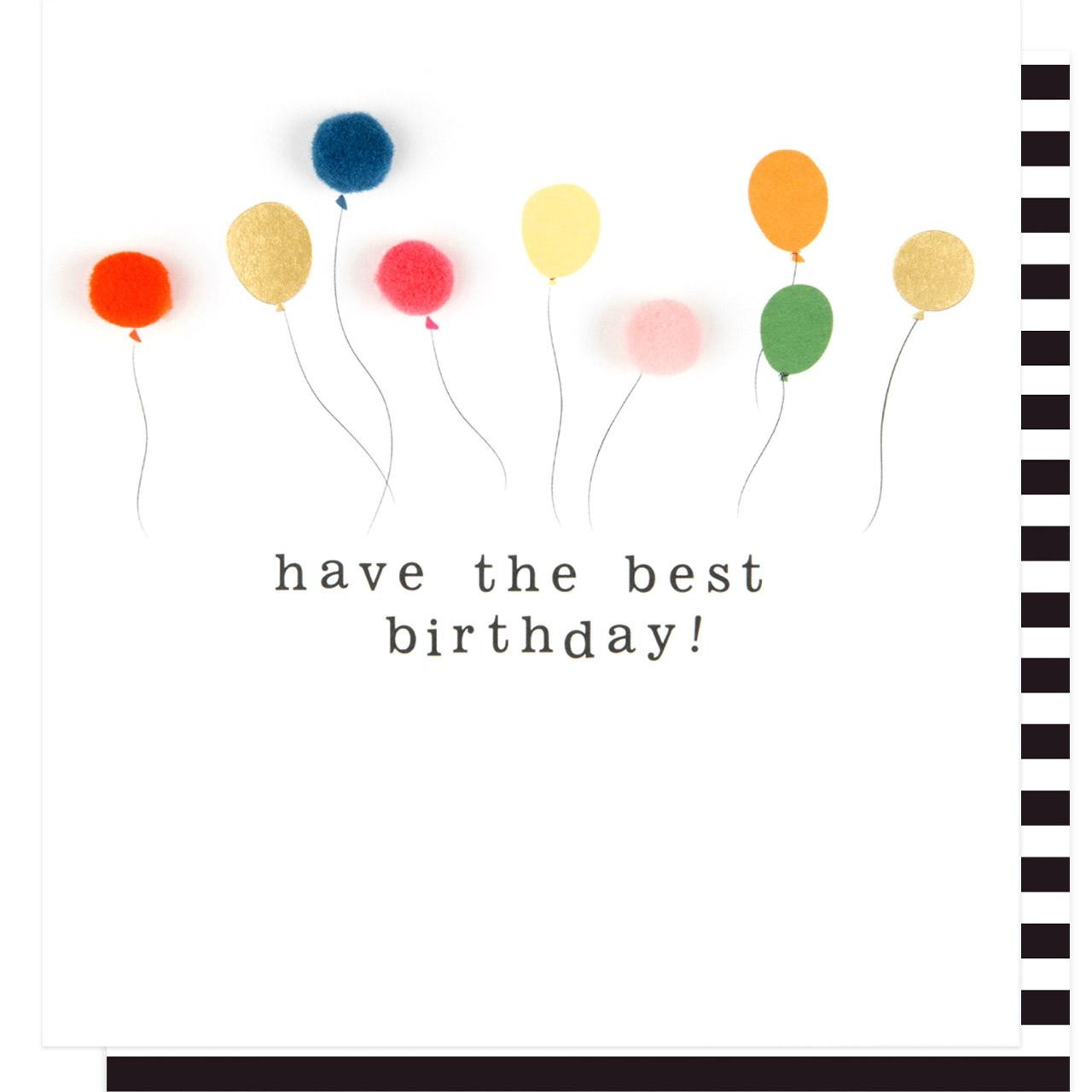 This charming Caroline Gardner birthday card is part of the exclusive Pom Pom range, designed for truly notable celebrations. It offers a premium, tactile finish, detailed with sophisticated gold foil accents and attached three-dimensional mini pom-poms. This combination adds an extra special visual touch to your greeting.