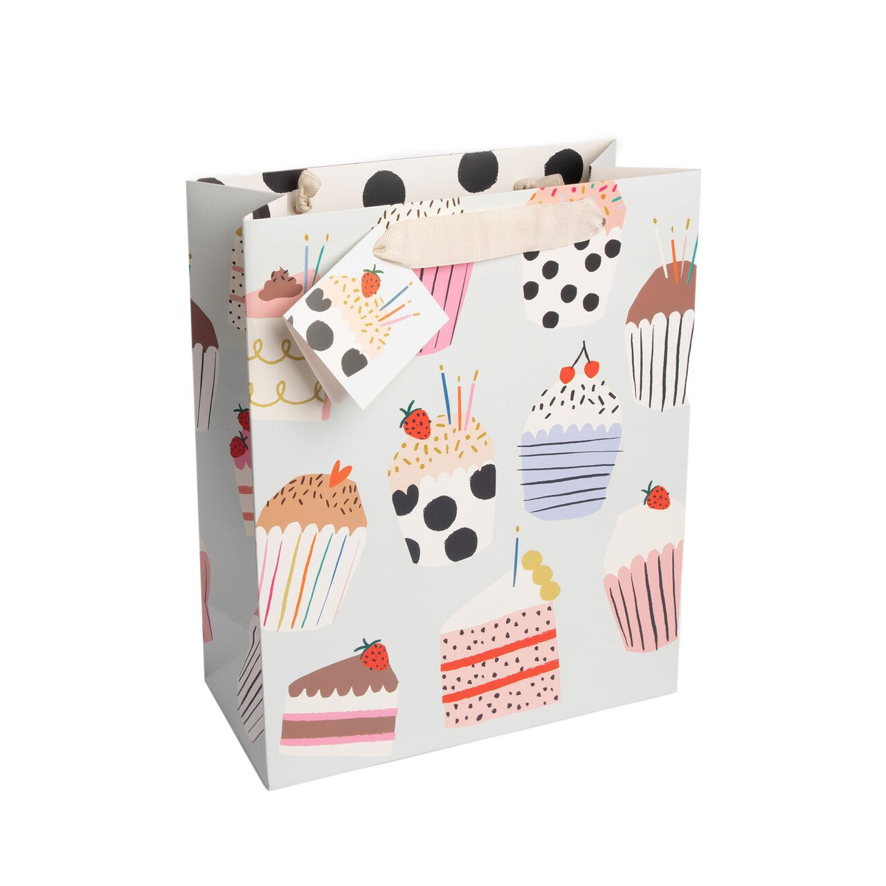 Present your sizeable presents beautifully using this delightful Caroline Gardner large gift bag, featuring a charming cupcake print design. This spacious option is specifically sized for larger items, making wrapping less complex. It offers a stylish and convenient solution for special occasions.