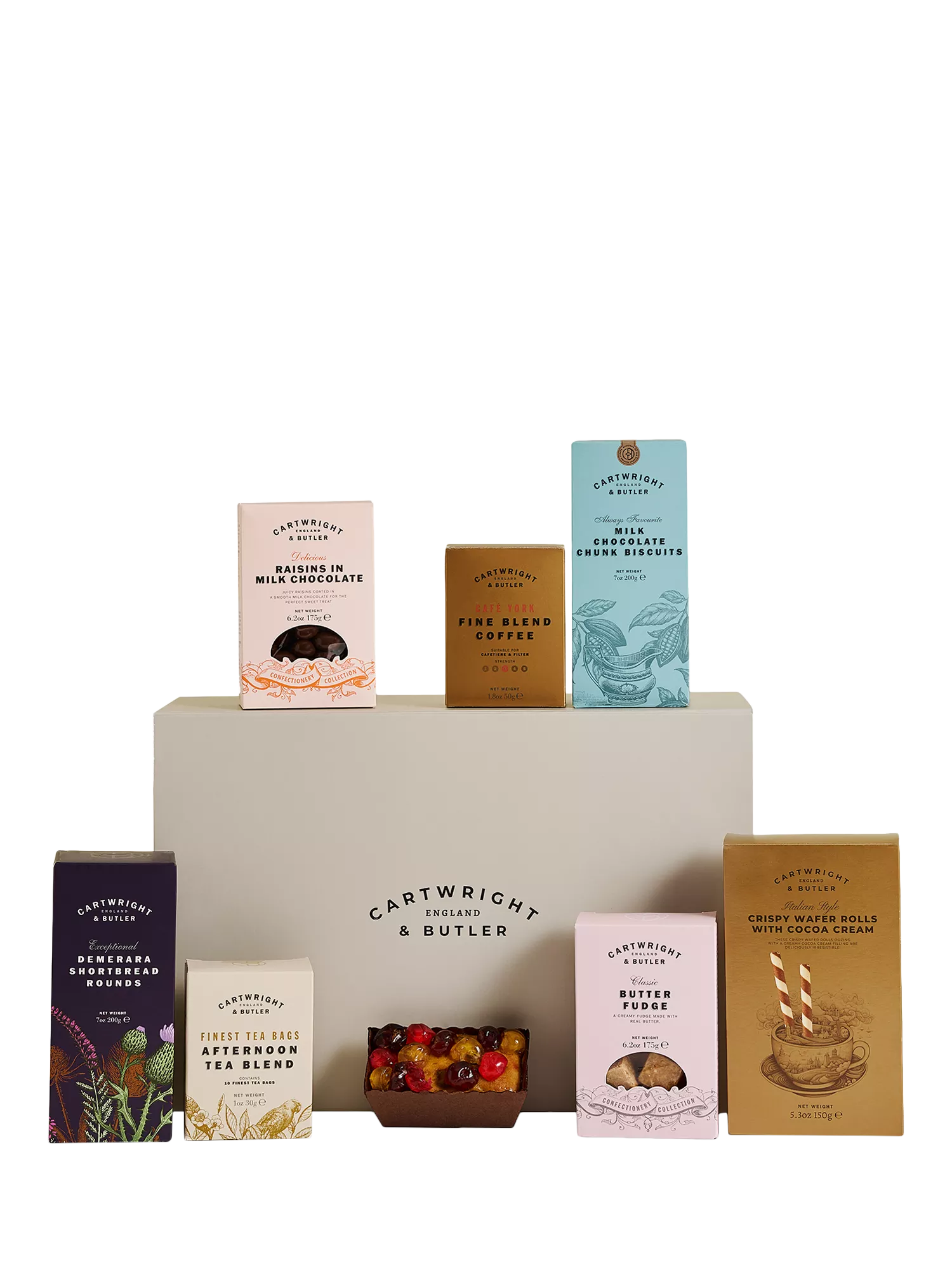 Who doesn't love a good Afternoon Tea? This fabulous selection from Cartwight & Butler includes: tea and coffee, a selection of chocolate, crumbly and shortbread biscuits and a rich mini fruit cake.