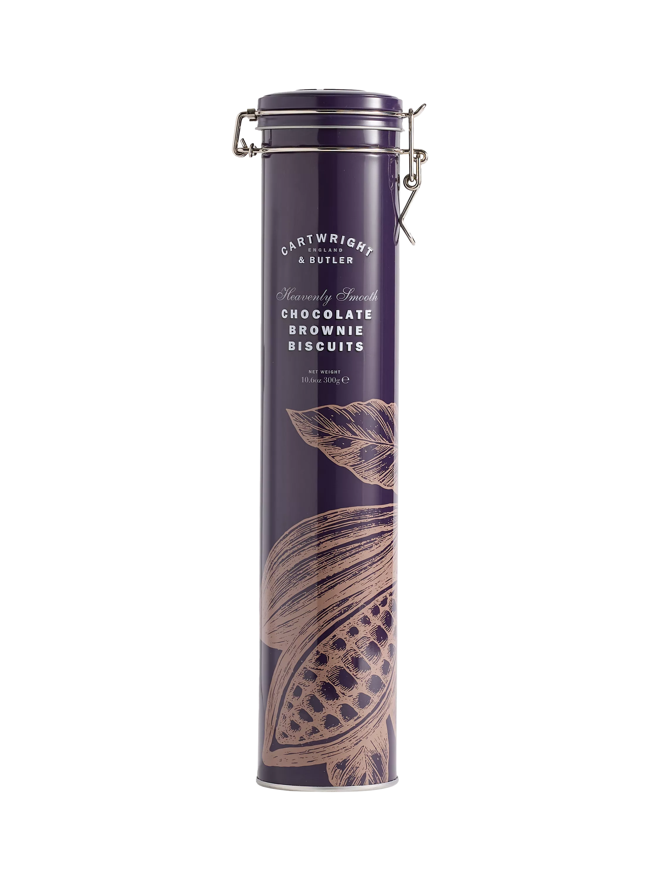 A rich, smooth slice of chocolatey heaven that is the perfect pairing with your morning coffee. Presented here in a signature biscuit tin that comes with a clip lid.