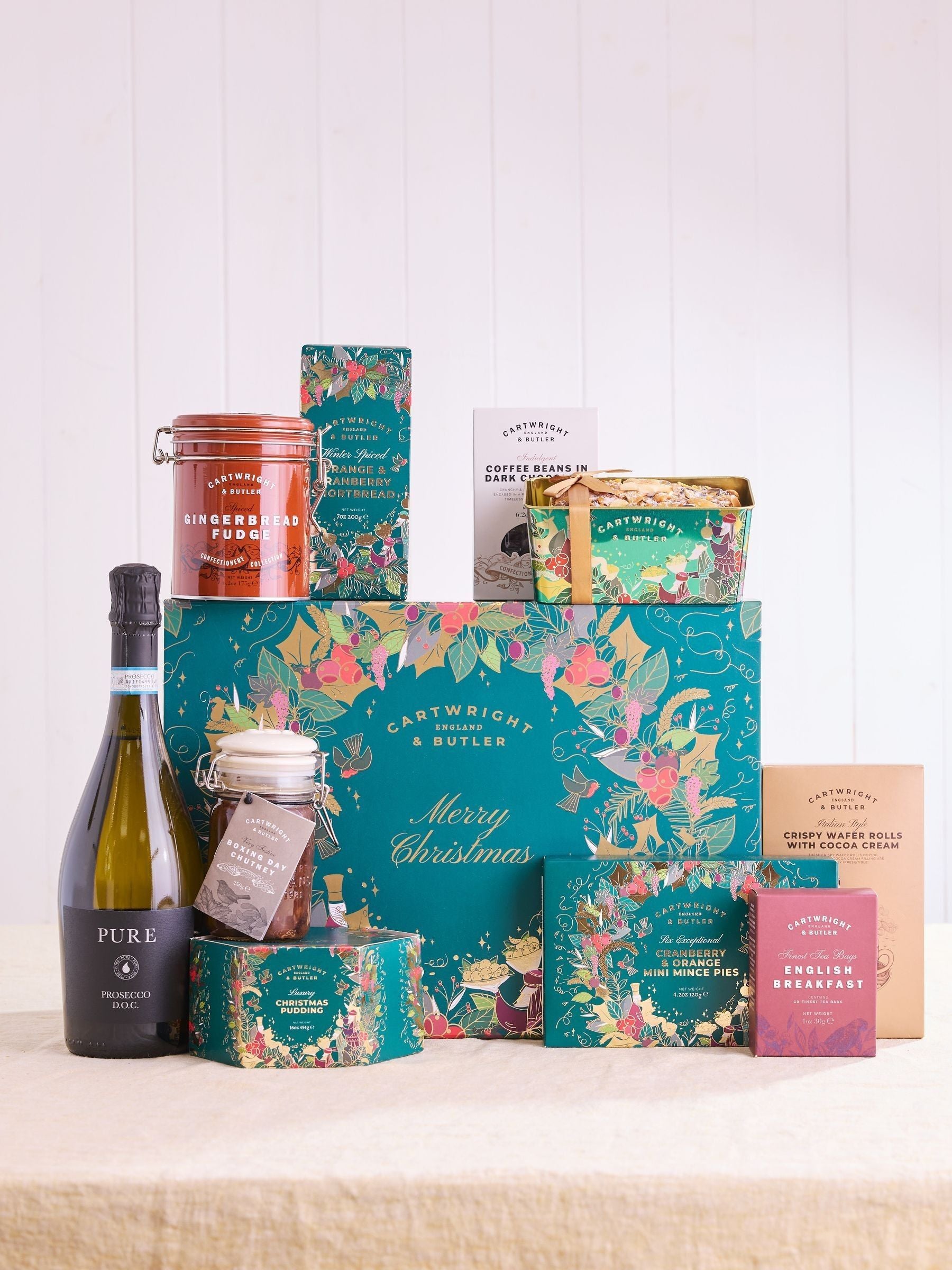 Pop the cork on this wonderful Christmas Gift Box. Bubbles flowing, whilst enjoying a slice of rich Christmas Cake or a festive mince pie, a nibble on some fudge or a taste of some buttery biscuits. This hamper makes a glorious Christmas gift. UK Mainland Delivery Only.