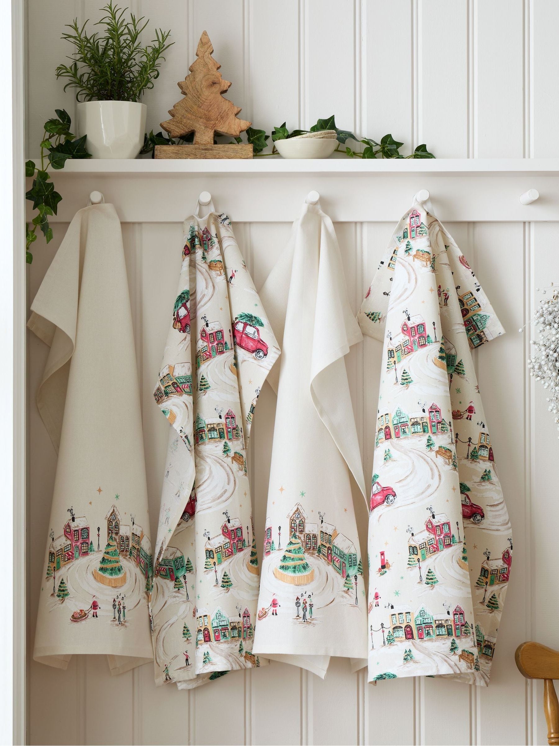 Catherine Lansfield Natural Christmas Town Cotton Kitchen Tea Towel