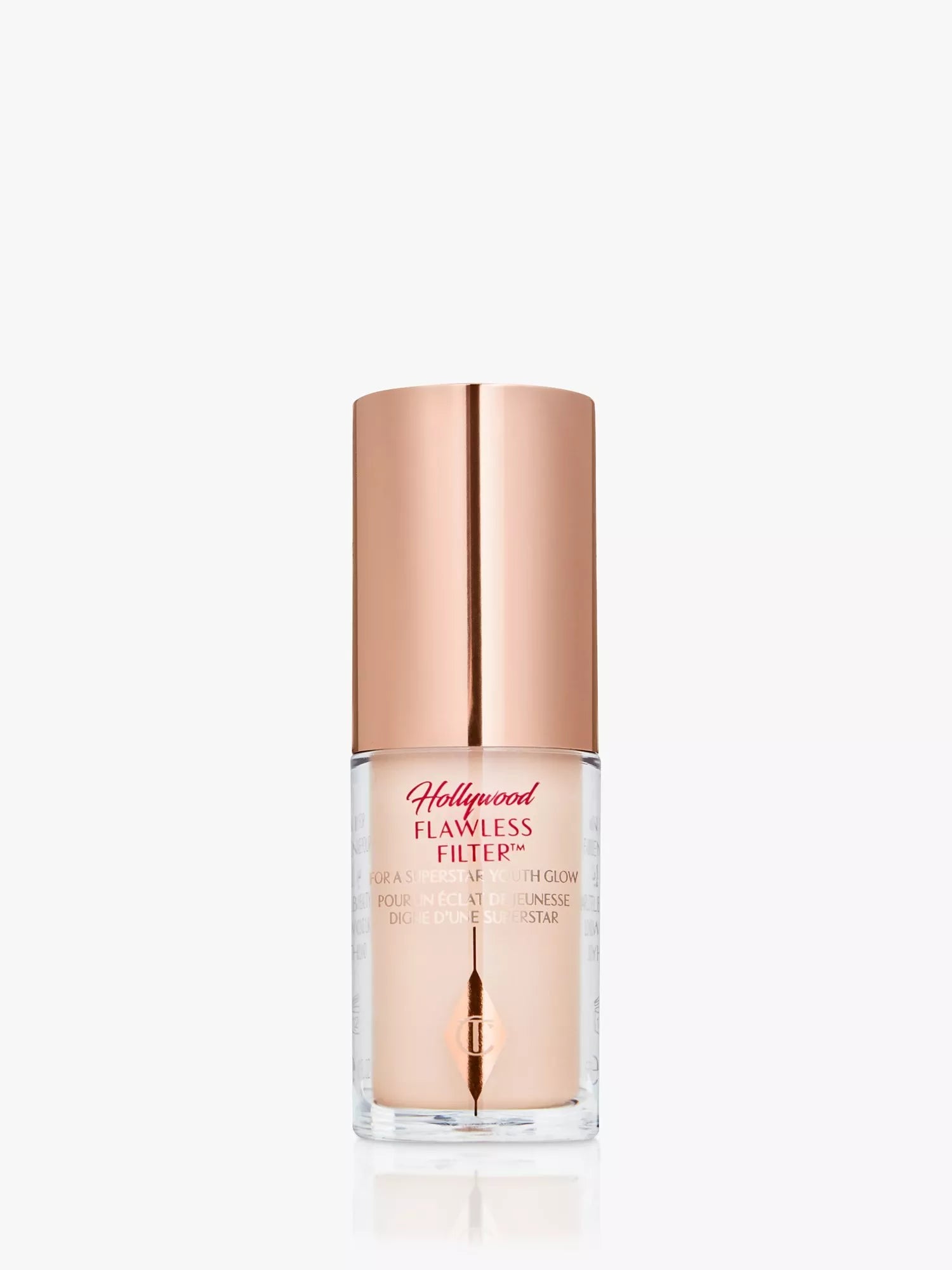"Darlings, get your glow on the go with my new mini Hollywood Flawless Filter! Inspired by the perfecting properties of social media and the illuminating effects of Hollywood lights, it blurs, smooths and illuminates for the most magical glow of your life!