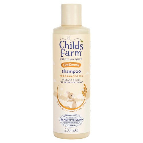 Read MoreFrom the UK's number 1 children's haircare brand*, Childs Farm's OatDerma Shampoo has been created specifically for dry and itchy scalps with a mild, fuss-free, easy-to-rinse formulation which is suitable for the whole family. Clinically proven to support the skin barrier and packed with the goodness of oats, this is superfood for sensitive scalps. The soothing fragrance-free formula provides a gentle foaming solution without compromising on shiny and healthy-looking hair. - Instantly soothing and as mild as water - Tear-free, sulfate-free, quick-rinse formula - Perfect for all the family (newborns and upwards) to use in their haircare routine - Formulated with 97% natural origin** ingredients - Infused with a nourishing blend of colloidal oatmeal and oat bran extract, sustainably sourced from the Nordics - Dermatologist and Paediatrician approved for sensitive skin - Also suitable for people who may be prone to eczema - 94% of parents agreed hair was left looking nourished and conditioned after just one use*** *Circana data. All Outlets, 52we 17th August 2024 **natural origin ingredients calculated using ISO standard 16128 ***based on a 2 week user trial with 109 participants using OatDerma Shampoo & OatDerma Conditioner