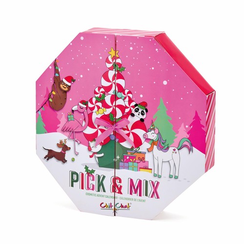 Countdown to Christmas with the Chit Chat Kids Cosmetics Advent Calendar, offering a daily ritual of discovery leading up to the big day. This item features an adorable, sweet-shaped design that enhances its appeal as a delightful seasonal present. It is designed to bring extra sparkle and sweetness to the holiday period for children to enjoy.
