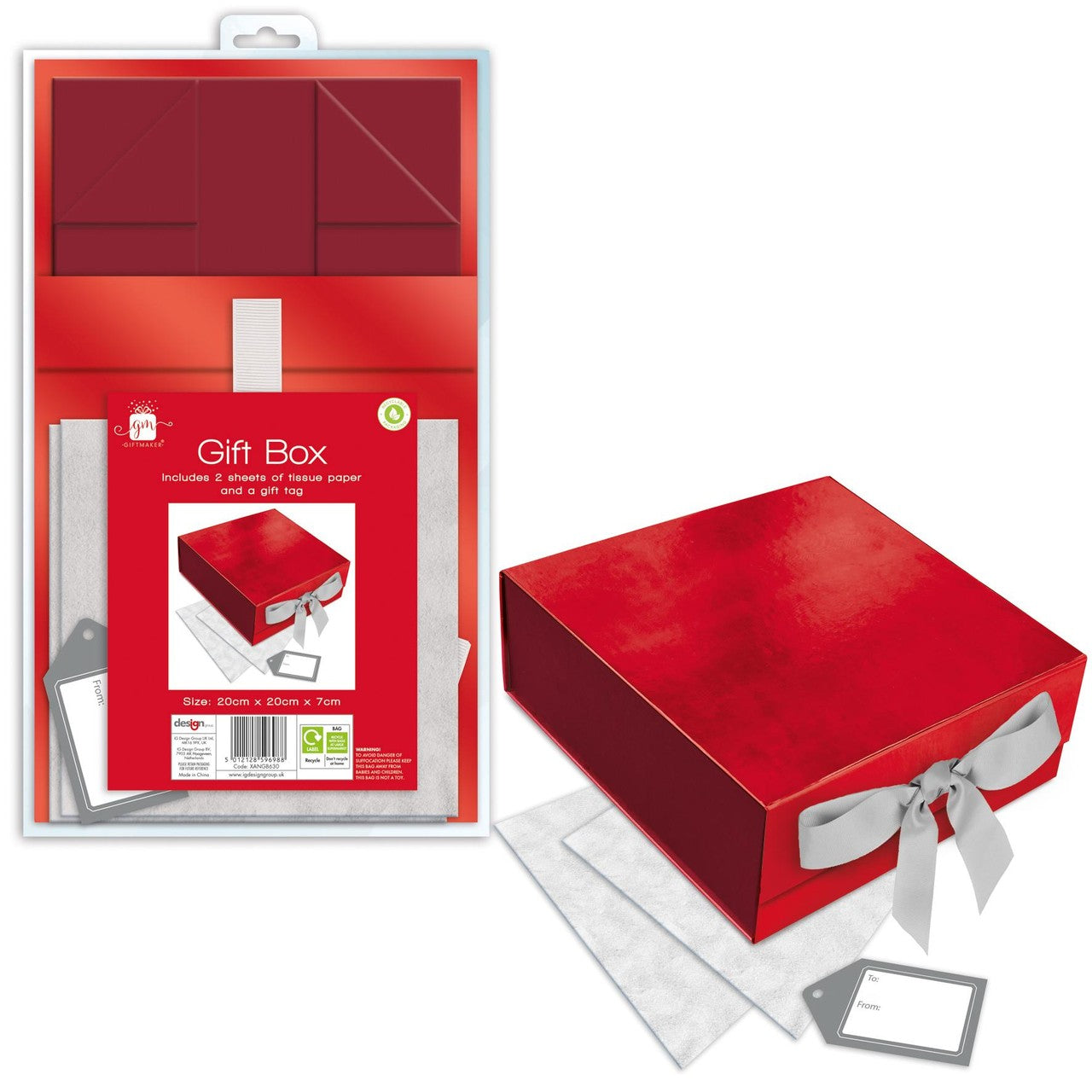 This giftmaker set provides a convenient, ready-to-use solution for presenting presents during the festive season. The package includes a robust, flatpack red gift box, two sheets of tissue paper, and a dedicated gift tag. This kit simplifies your entire Christmas wrapping procedure.
