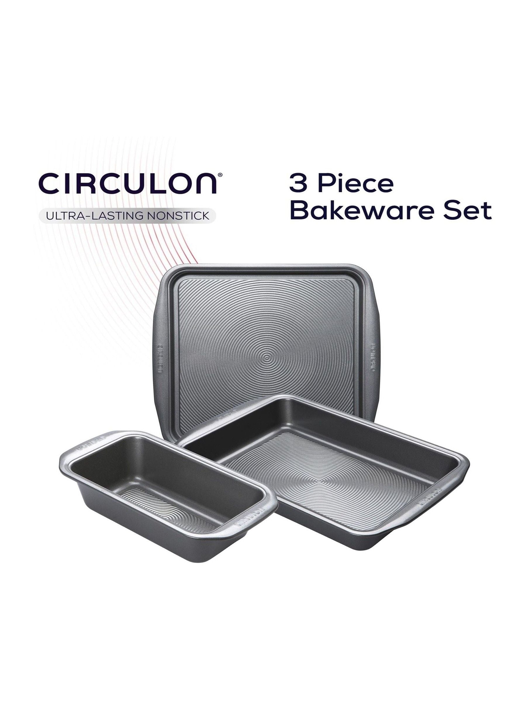 BAKING SET INCLUDES - 3-piece baking set with 30cm square oven tray, 16 x 29cm loaf tin, and 26 x 39cm deep baking tray/cake tin. TOTAL NON-STICK SYSTEM - This bakeware set features Circulon’s Total Non-Stick technology for easy food release and effortless cleaning. The hi-low groove system provides unrivalled cooking performance and non-stick durability. OVEN AND DISHWASHER SAFE - This baking tins set is oven safe up to 230°C and dishwasher safe, offering easy cleaning for complete convenience. PFOA FREE - All the non-stick surfaces on this baking set are safe and free from PFOA, lead, and cadmium. LIFETIME GUARANTEE - This durable bakeware set comes with Circulon’s lifetime guarantee for your complete peace of mind. Circulon Momentum 0.6mm Non-Stick Bakeware is designed with the confident baker in mind. Each product comes with our unique Total Non-Stick System, creating easy food release, saving time and effort, and delivering perfect baking performance time after time. All our non-stick surfaces are PFOA, cadmium, and lead-free. The 0.6mm thickness of each piece resists warping in the oven and heats evenly, giving you confidence in the kitchen.