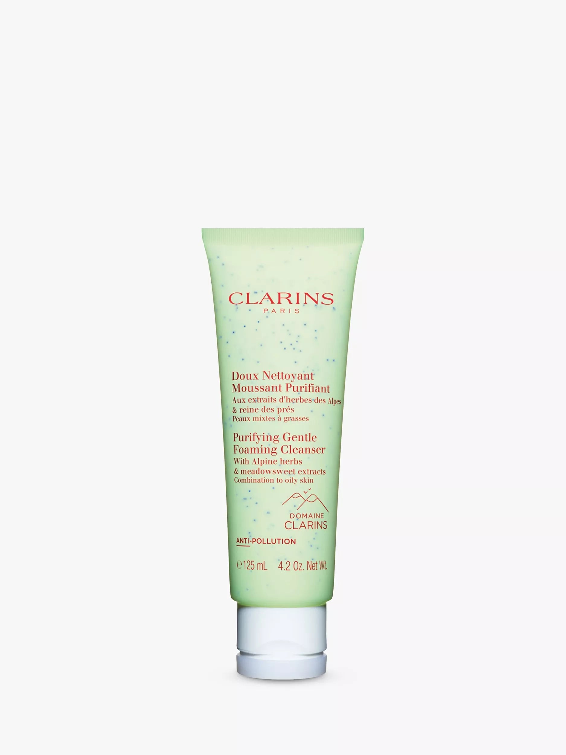 Clarins Purifying Gentle Foaming Cleanser leaves combination to oily skin feeling soft and soothed. This effective cleanser tackles excess sebum and pollution, perfect for those seeking a naturally derived, effective skincare solution.