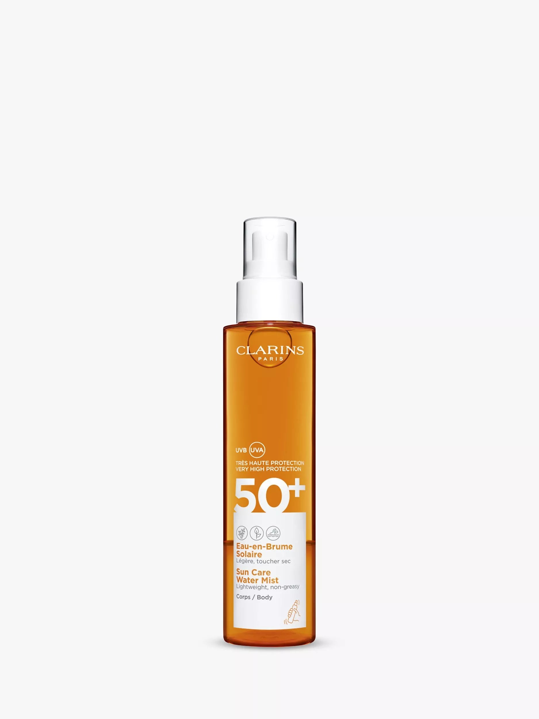 Sun Care Water Mist SPF 50+ is a fast-absorbing spray that refreshes and hydrates the skin.