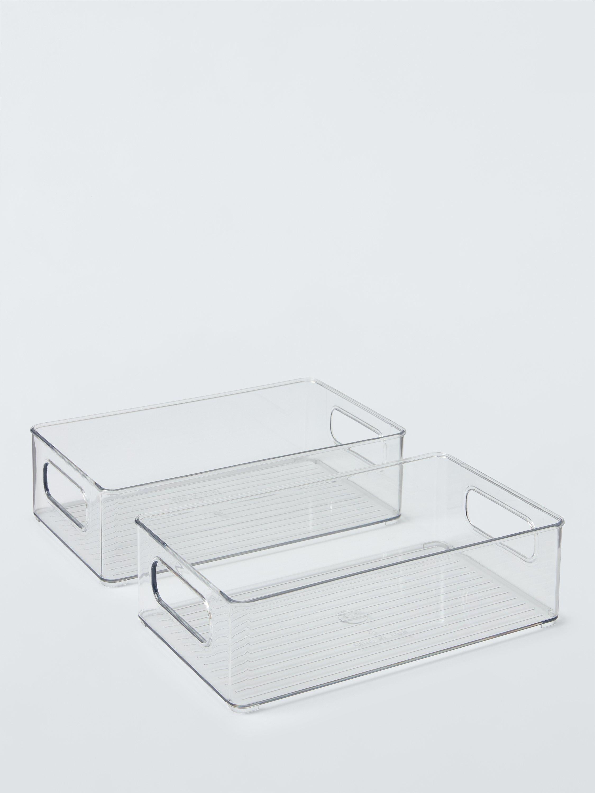 John Lewis offers this practical Set of 2 Deep Narrow Storage Boxes, perfect for systematic home organising requirements throughout your dwelling. The transparent plastic construction enables immediate identification of stored contents across different rooms. These durable containers efficiently utilise vertical space, keeping essential items tidy and accessible for daily use.