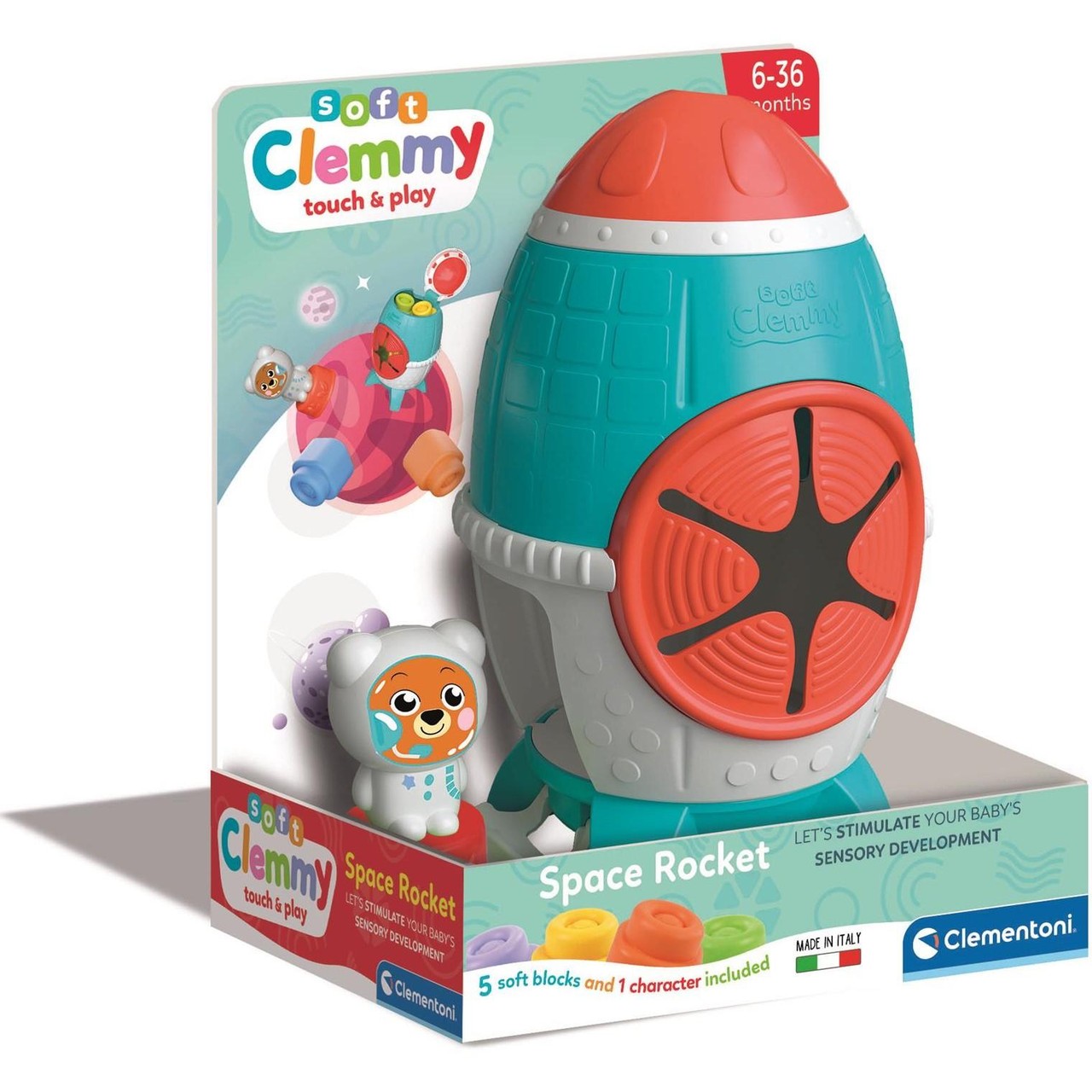 Discover imaginative play with the Clementoni Soft Clemmy Space Rocket set, which includes a charming astronaut figure ready for exploration. This set encourages creative building and exploration through tactile play experiences suitable for young children. The soft blocks are designed to be easily manipulated during cosmic adventures.