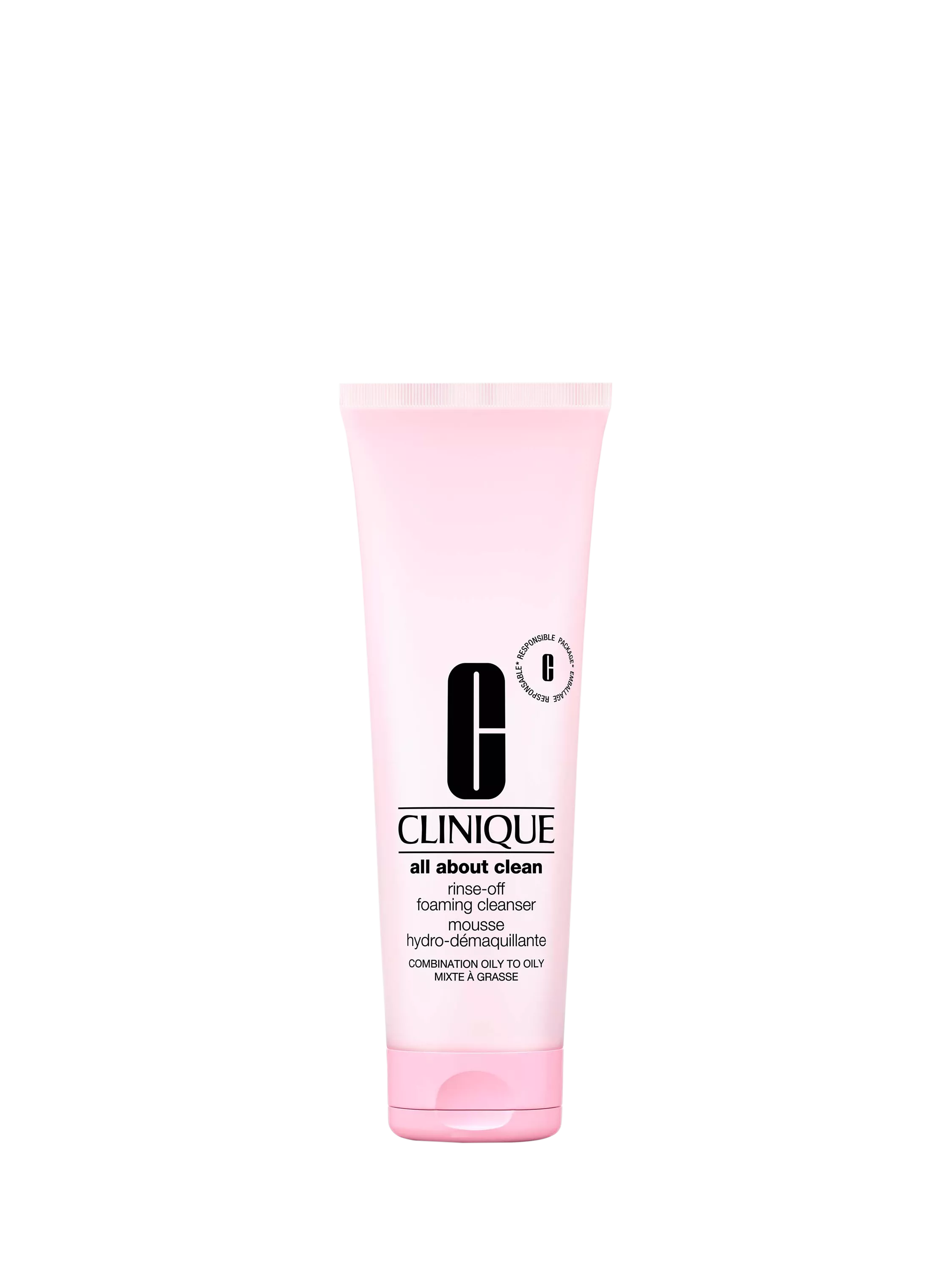 Clinique’s All About Clean™ Rinse-Off Foaming Cleanser is a mousse cleanser that gently and effectively rinses away makeup. Purifying cleanser for oily skin lathers into a rich foam to rinse away pollution, dirt, excess oil, long-wearing makeup, and sunscreen quickly, gently, effectively. Gentle cleanser is non-drying and non-stripping. Leaves oily skin feeling fresh and clean.