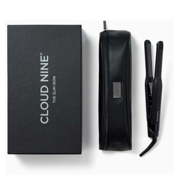 The Cloud Nine Slim Iron is designed for precise styling of shorter hair lengths and fringes. It features cushioned plates infused with Sericite® technology, offering a kinder approach to heat styling. This iron allows for detailed touch-ups and the creation of well-defined curls with control.
