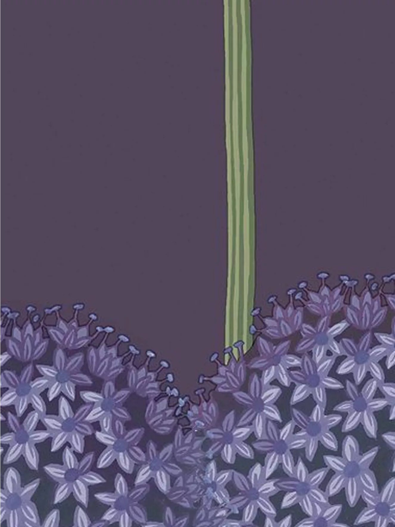 A contemporary, geometric take on the traditional floral motif, Allium takes the striking herbaceous perennial and creates a bold repeat of blooming clusters. With their firework burst of colour and texture, the allium spheres of flora, combined with their long, leafless stems, makes a unique floral stripe.