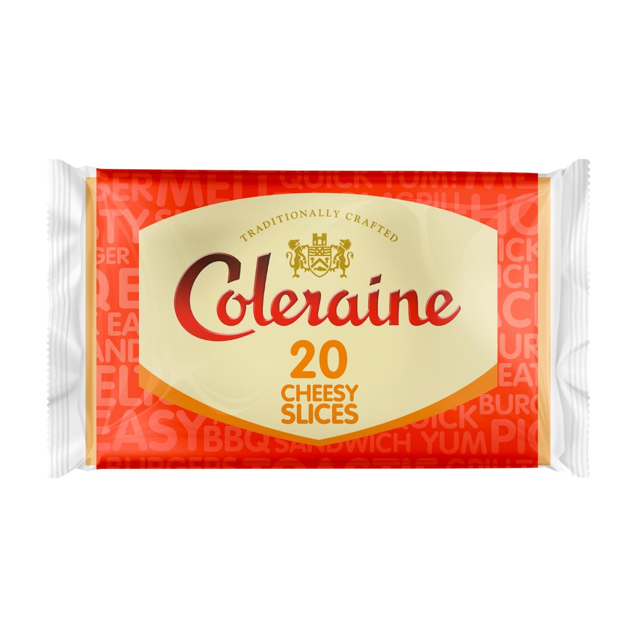 Coleraine Cheesy Slices are traditionally crafted dairy portions designed for immediate use in your daily meals and recipes. This convenient 20-slice pack offers a dependable cheesy flavour profile, perfect for boosting sandwiches or enhancing simple snacks. The product is also a source of calcium, a mineral needed for the maintenance of normal bones. Enhance your burgers or toasties effortlessly with these ready-to-use servings straight from the pack. Enjoy consistent quality derived from traditional crafting methods in every portion.