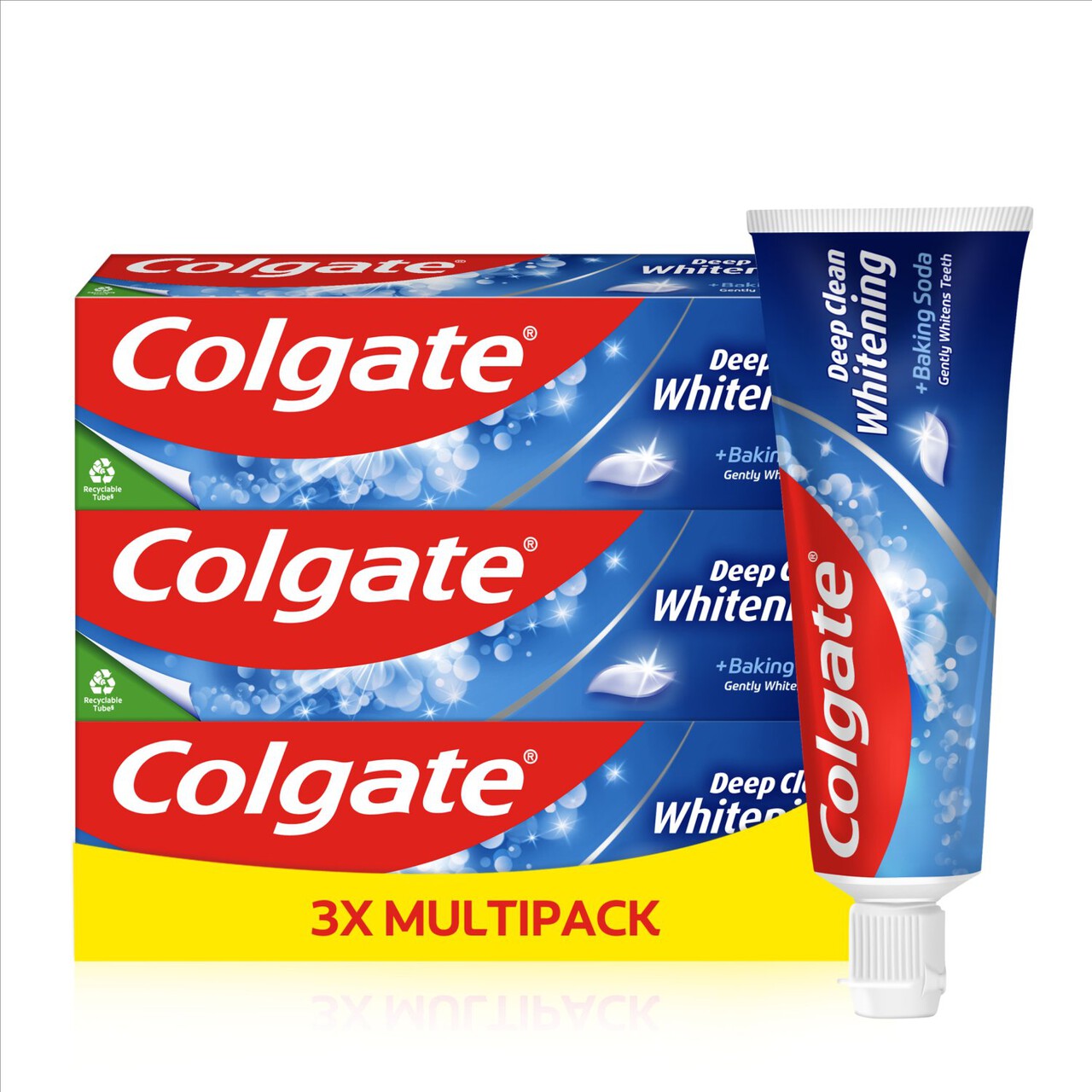 Colgate Deep Clean Whitening toothpaste incorporates baking soda to gently lift surface stains effectively from the enamel. This daily formula is specifically designed to help you achieve naturally white teeth through consistent, regular brushing.