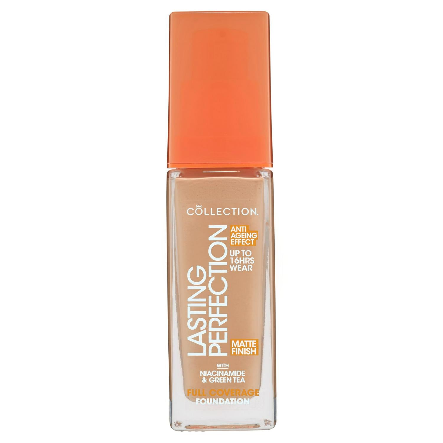 Achieve a flawless complexion with the Collection Lasting Perfection foundation, offering full coverage in a surprisingly lightweight formula. This makeup is designed to control excess oil and refine the appearance of pores for a smoother look. It provides up to 16 hours of comfortable wear while delivering a desirable matte finish.