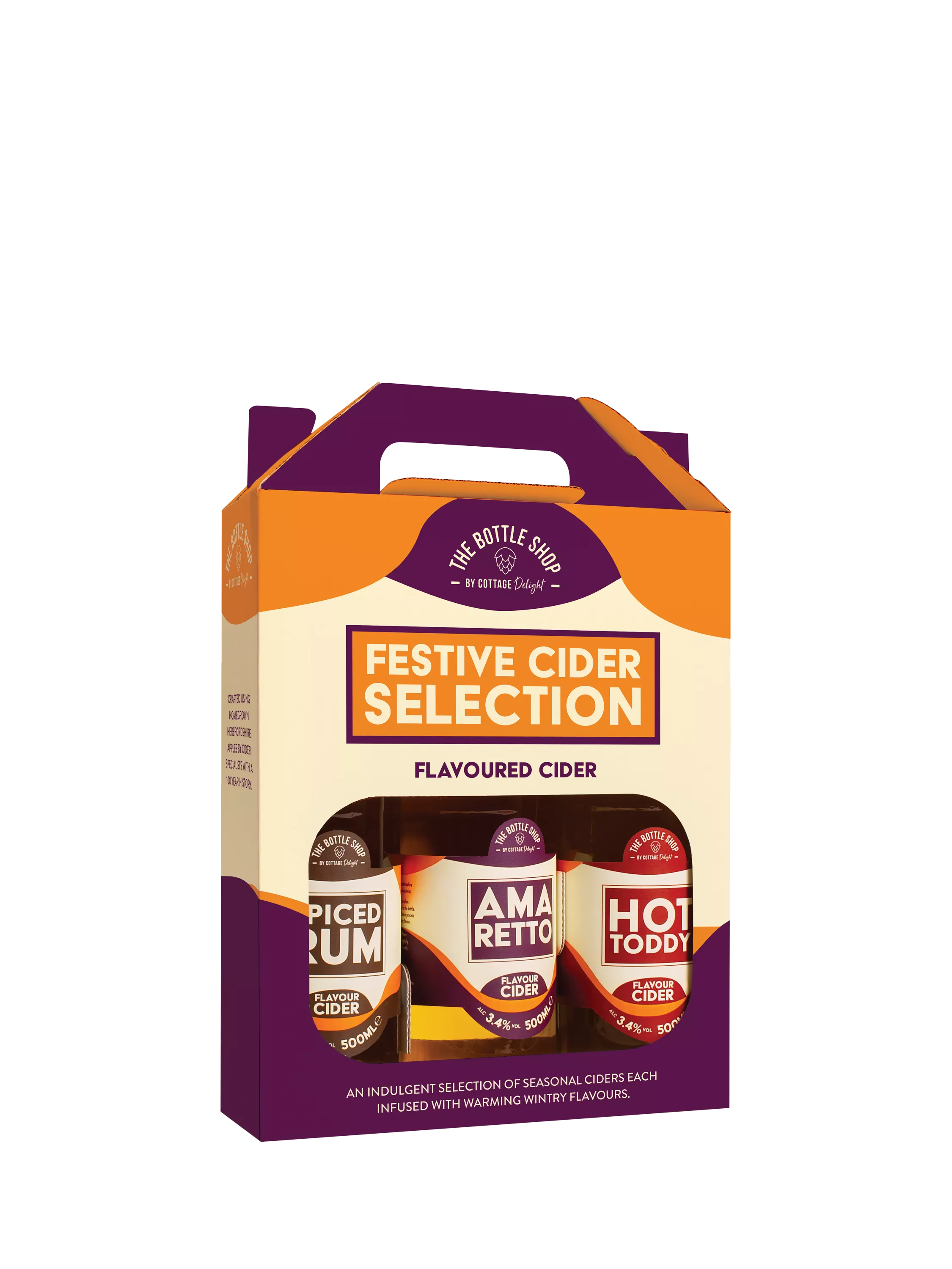A selection of festive themed ciders, perfect to enjoy on a cold winters night. This gift box includes: Spiced Rum Cider, Amaretto Cider and Hot Toddy Cider.