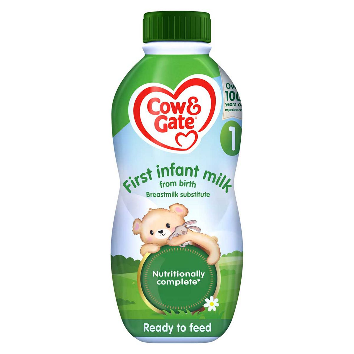 Ready to feed whenever your baby is. When you're out and about with your baby, Cow & Gate ready-made first infant milk makes feeding easier - simply pour straight into your baby's bottle. Comes in really handy 200 ml size too. Feeding instructions. Infants should be supervised at all times when feeding.