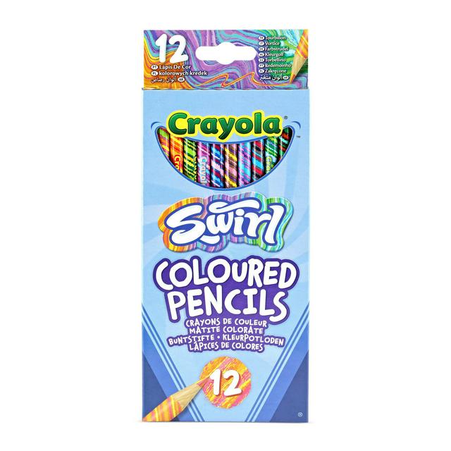 These Crayola Swirl Pencils offer a unique colouring experience by combining multiple colours within each core. Each pencil produces a distinct swirl effect, allowing for fun and unique rainbow patterns in your artwork. This set provides twelve vibrant options ready for immediate creative use.