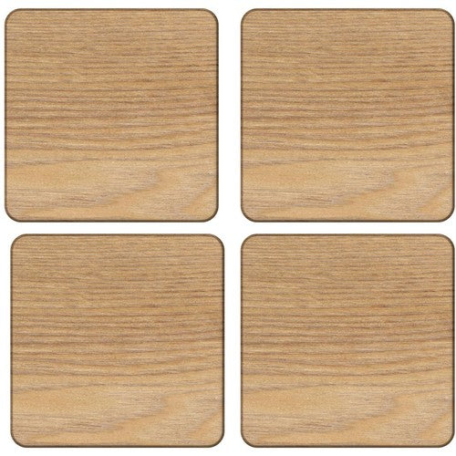 • The set contains four individual wooden coasters for comprehensive table protection.