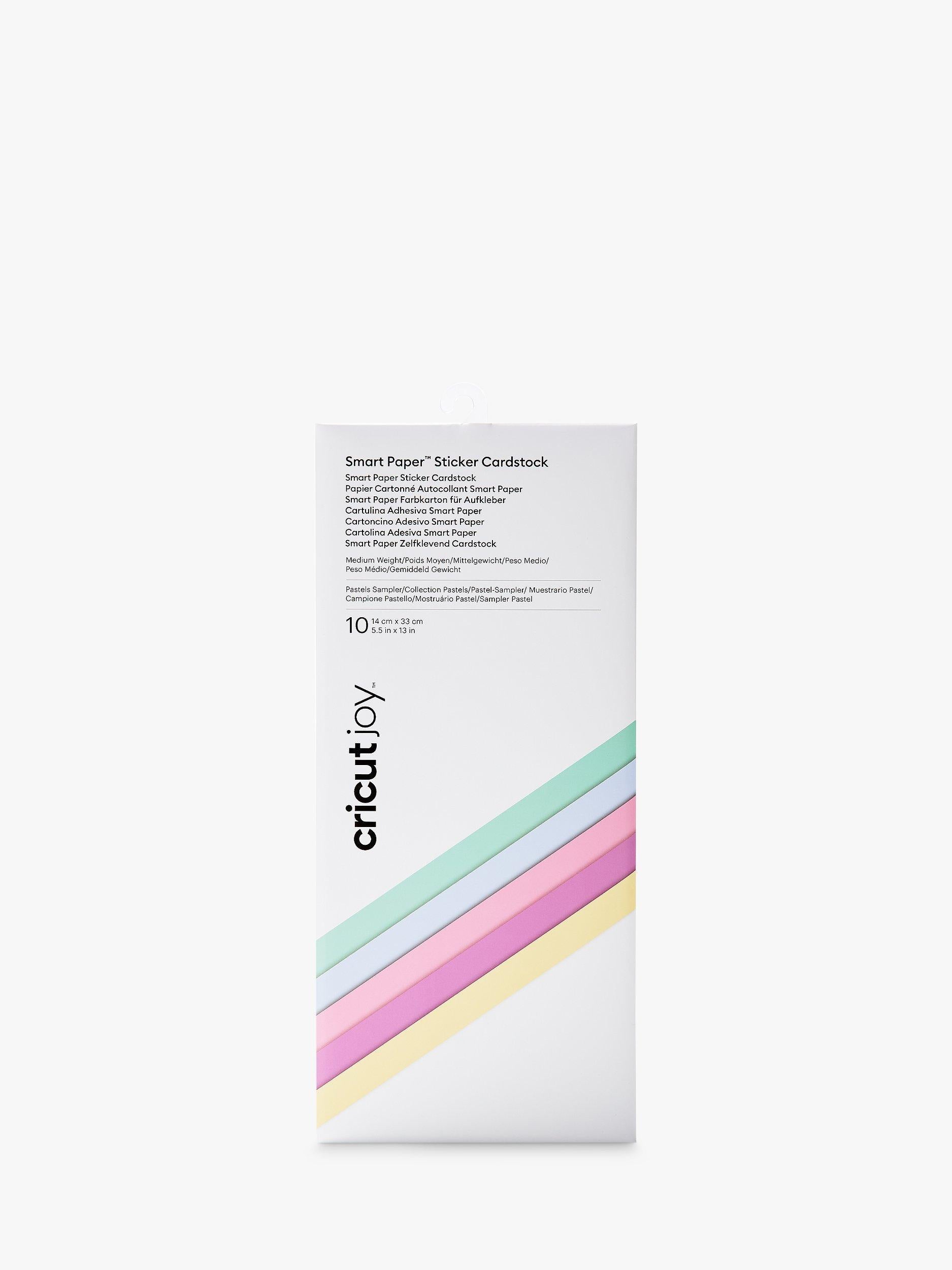 The Cricut Joy Smart Paper Sticker Card Stock Pack includes ten units for easy crafting preparation. This premium paper features a self-sticking adhesive backing, meaning no external glue is required for projects. Load this material straight into your machine to cut vibrant cards, layered art, or striking display banners quickly.