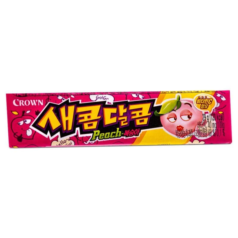 Discover Crown Secom-Dalcom Peach candy, a deliciously chewy and tangy treat from Korea! These soft caramels offer a unique blend of sweet and sour peach flavor that's perfect for satisfying your sweet cravings.
