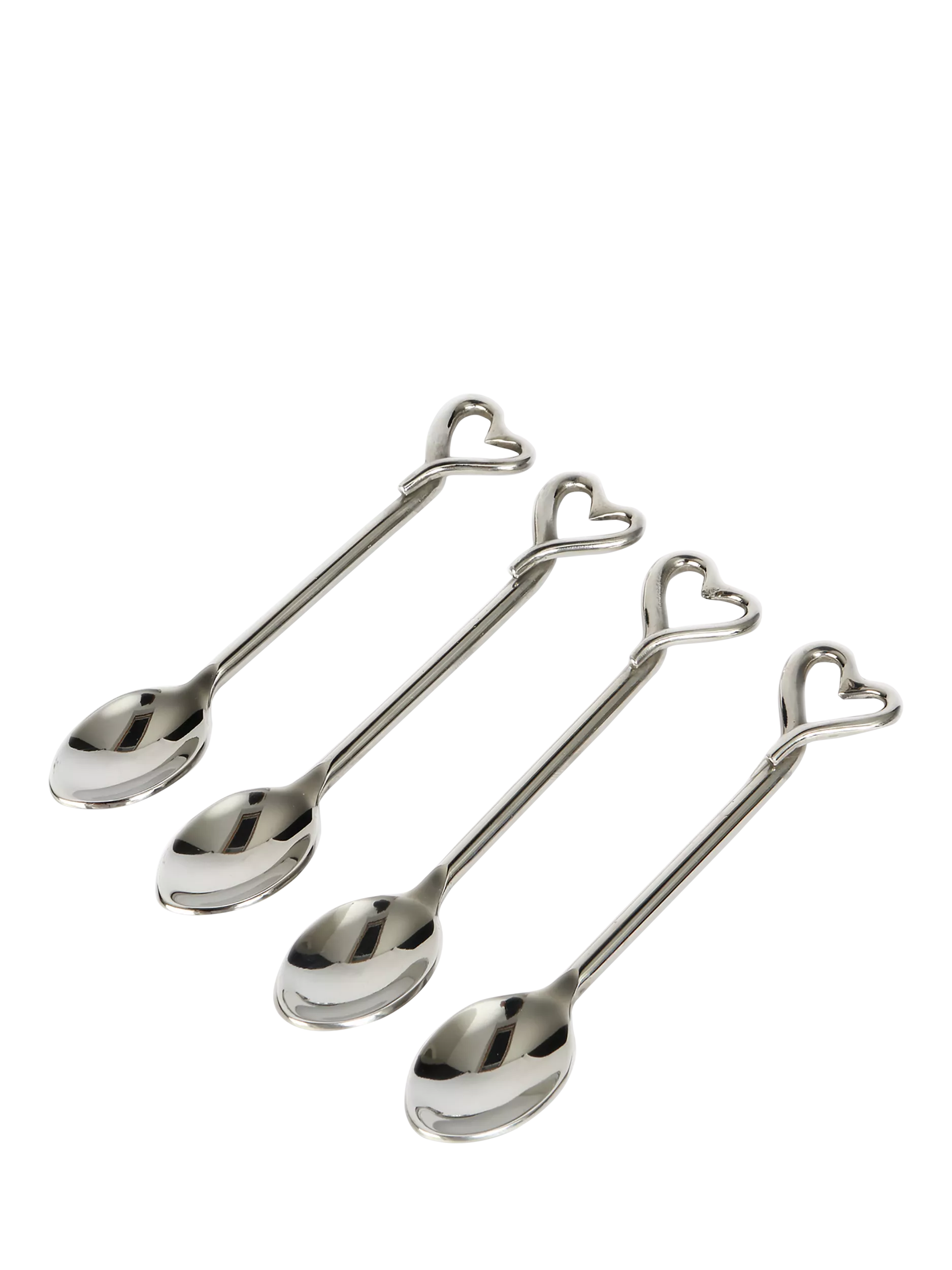 Four coffee spoons with the Amore heart-shaped handle from Culinary Concepts. A talking point at any coffee morning and a giftable design for any coffee lover. Elegantly packaged in a stylish presentation box. Dishwasher-safe.