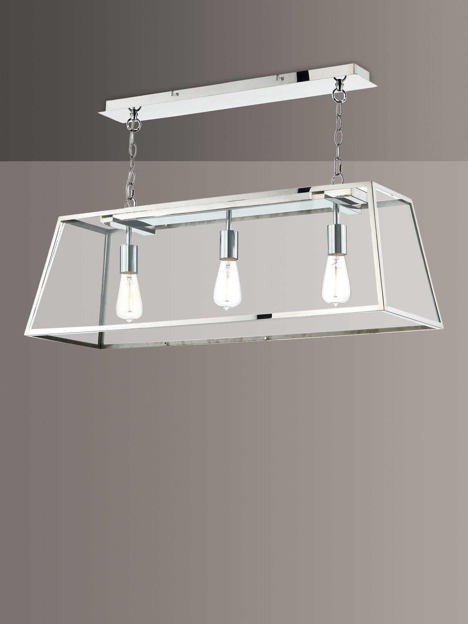 The Dar Academy 3 Light Bar Ceiling Light features a contemporary industrial aesthetic. Its striking matt finish enhances overhead lighting installations, such as kitchen islands or dining areas perfectly. This three-bulb fixture hangs from an adjustable chain, casting a warm, inviting glow that complements vintage filament bulbs.