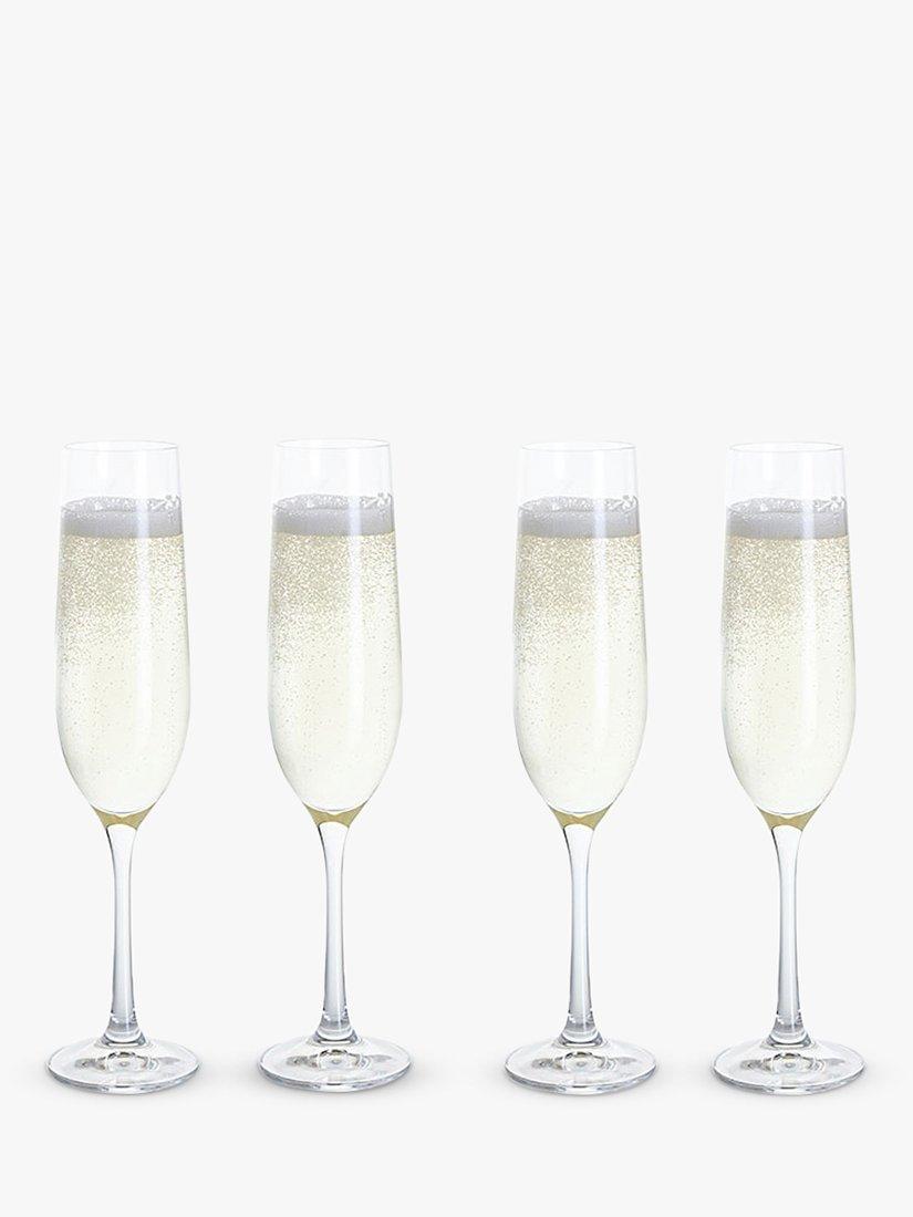 Dartington Crystal offers this elegant Entertain Glass Flute Set of 4, 190Ml, ideal for champagne and prosecco. Crafted from fine, lead-free crystal glass, these flutes feature beautiful clarity and remarkable strength for lasting use. This durable set perfectly maintains chilled beverages, making it essential drinkware.