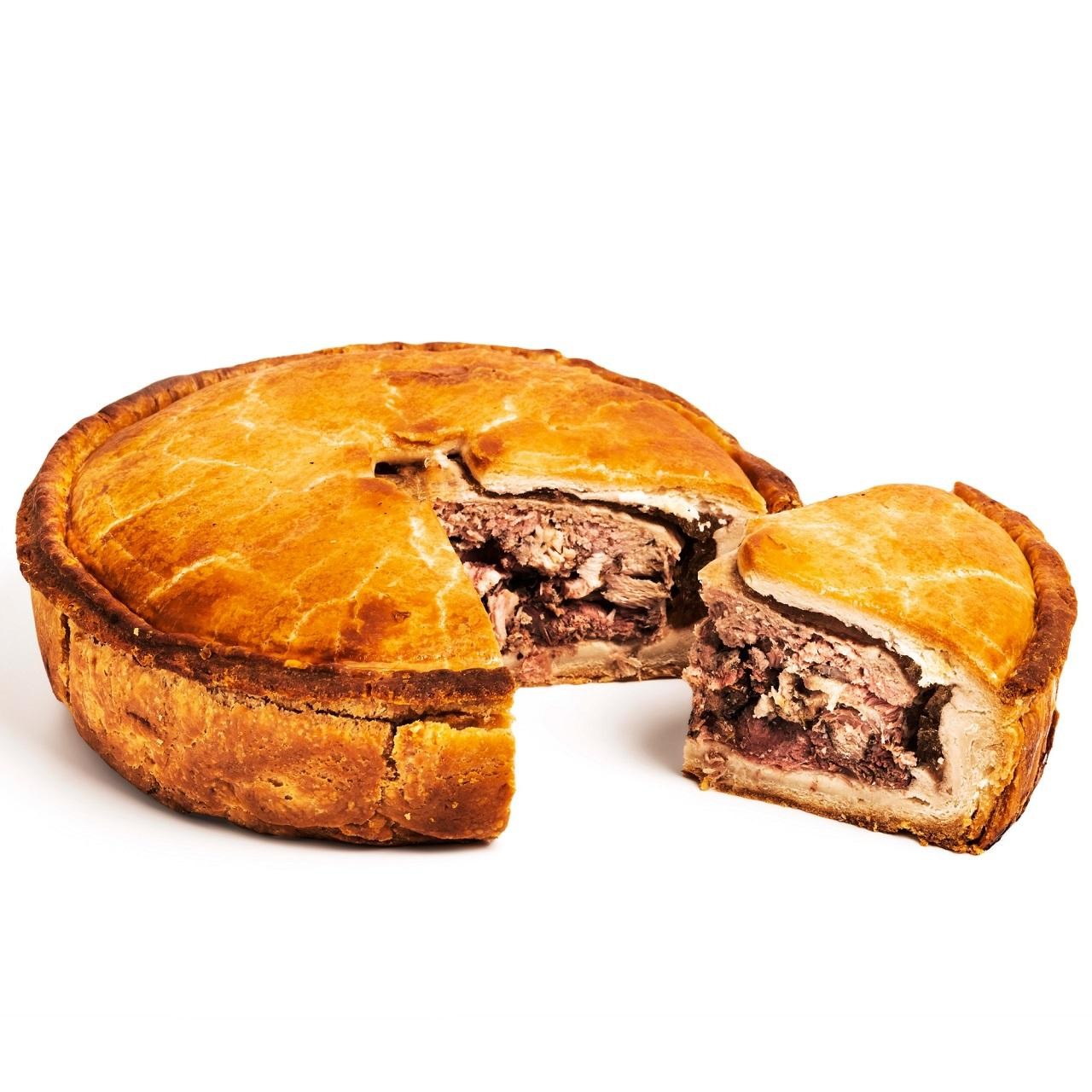 • Enclosed in a traditional, handmade hot water crust pastry shell.