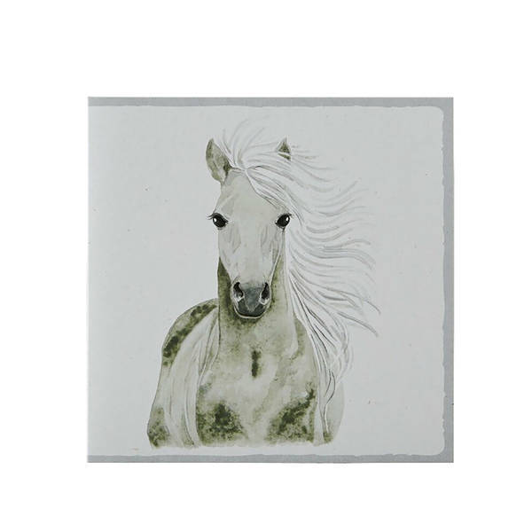 • Features an original, handpainted watercolour artwork of a grey horse.