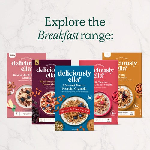 Start your morning with this golden roasted granola, rich in flavour and texture. It expertly blends creamy almond butter with whole almonds, wholegrain oats, and assorted seeds for a distinctively satisfying crunch. This high-fibre cereal offers a substantial, wholesome foundation for your daily nutrition.