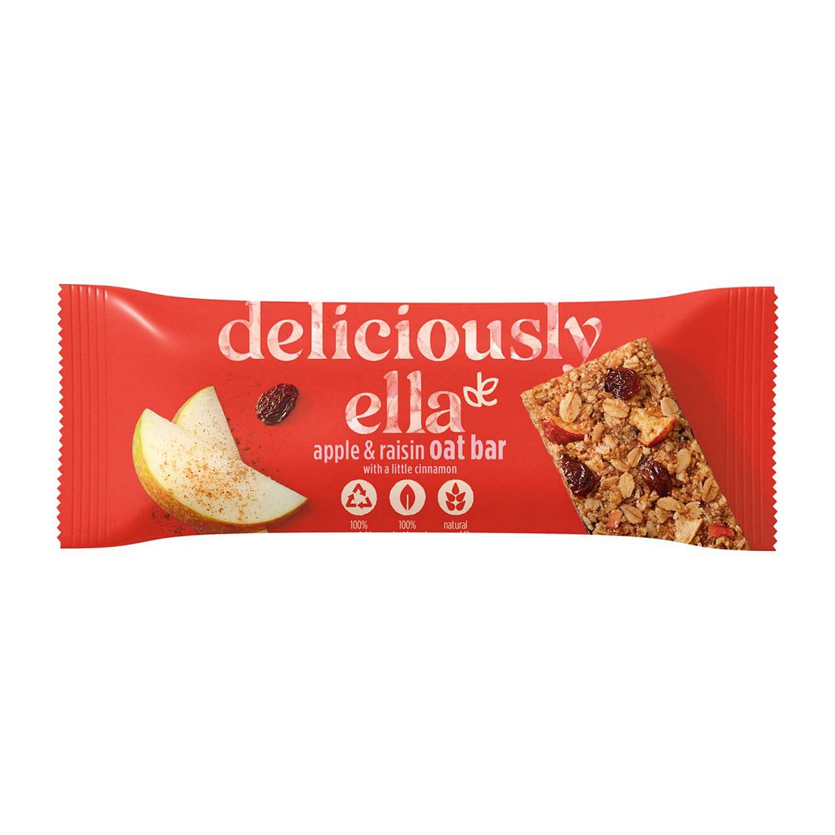 Deliciously Ella Apple, Raisin & Cinamon Oat Bar - 50gBaked flapjack oat bar with raisins, apple pieces and cinnamon.